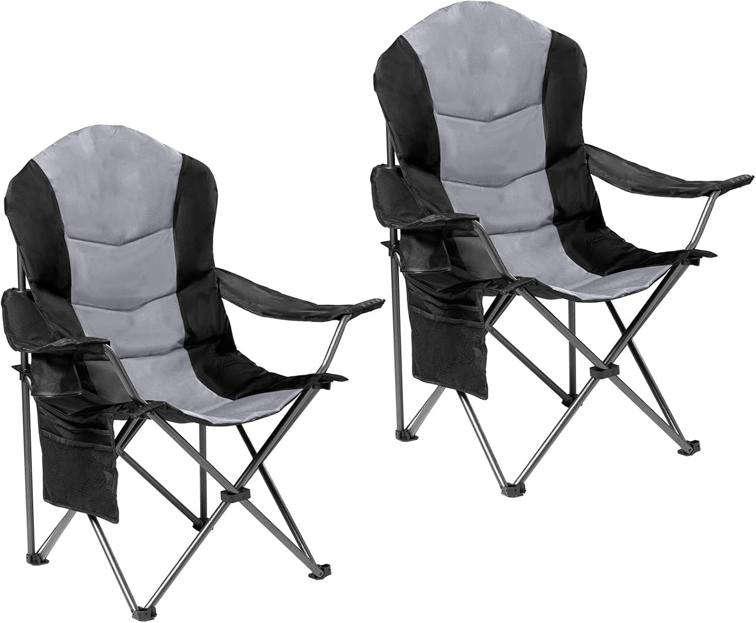 2 Pack Folding Camping Chairs for Adults – High Back Padded Outdoor Lawn Chairs with Lumbar Support & Cup Holder, 400lbs Heavy Duty Portable Camping Chairs Set (Black & Light Gray)