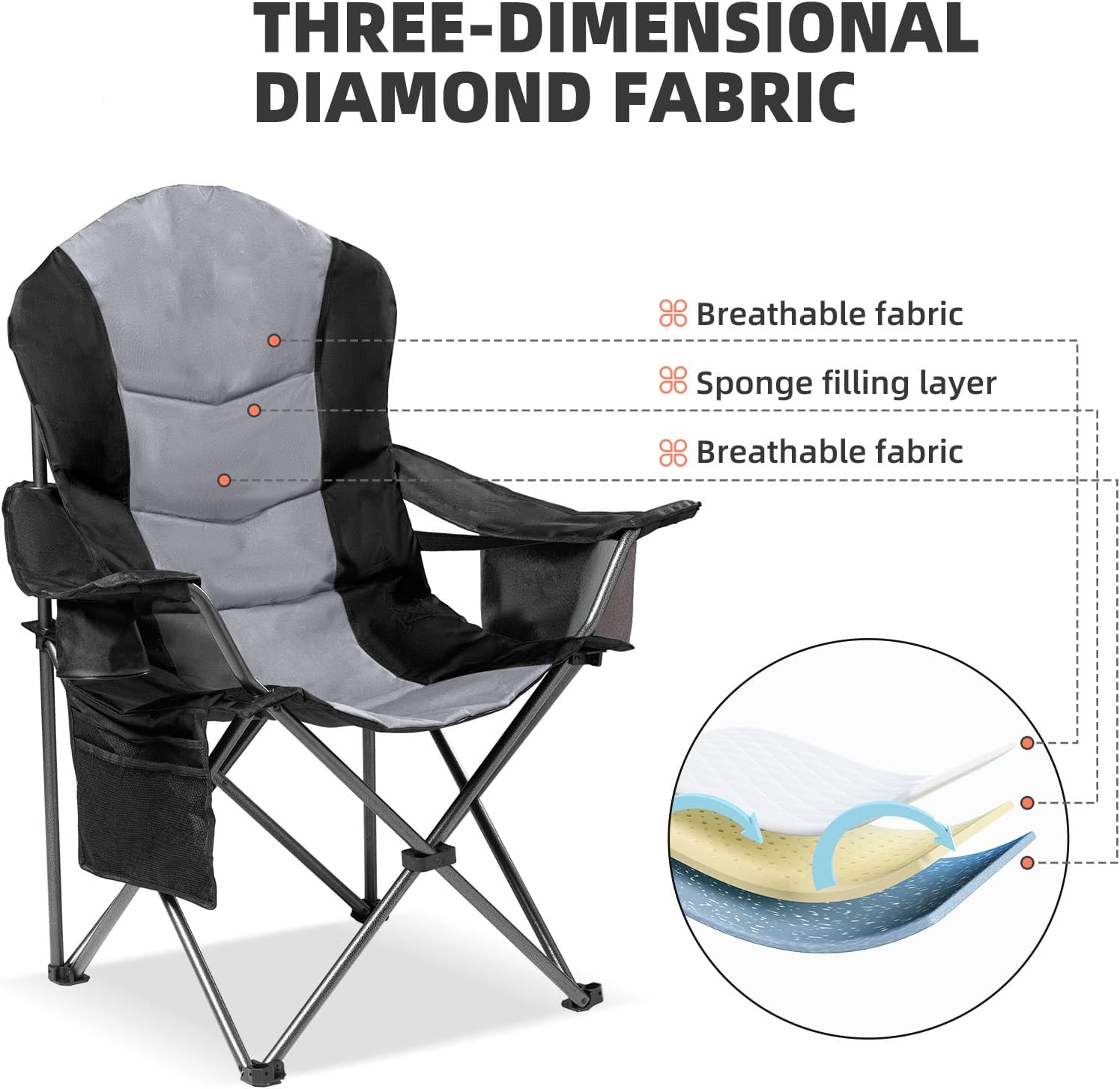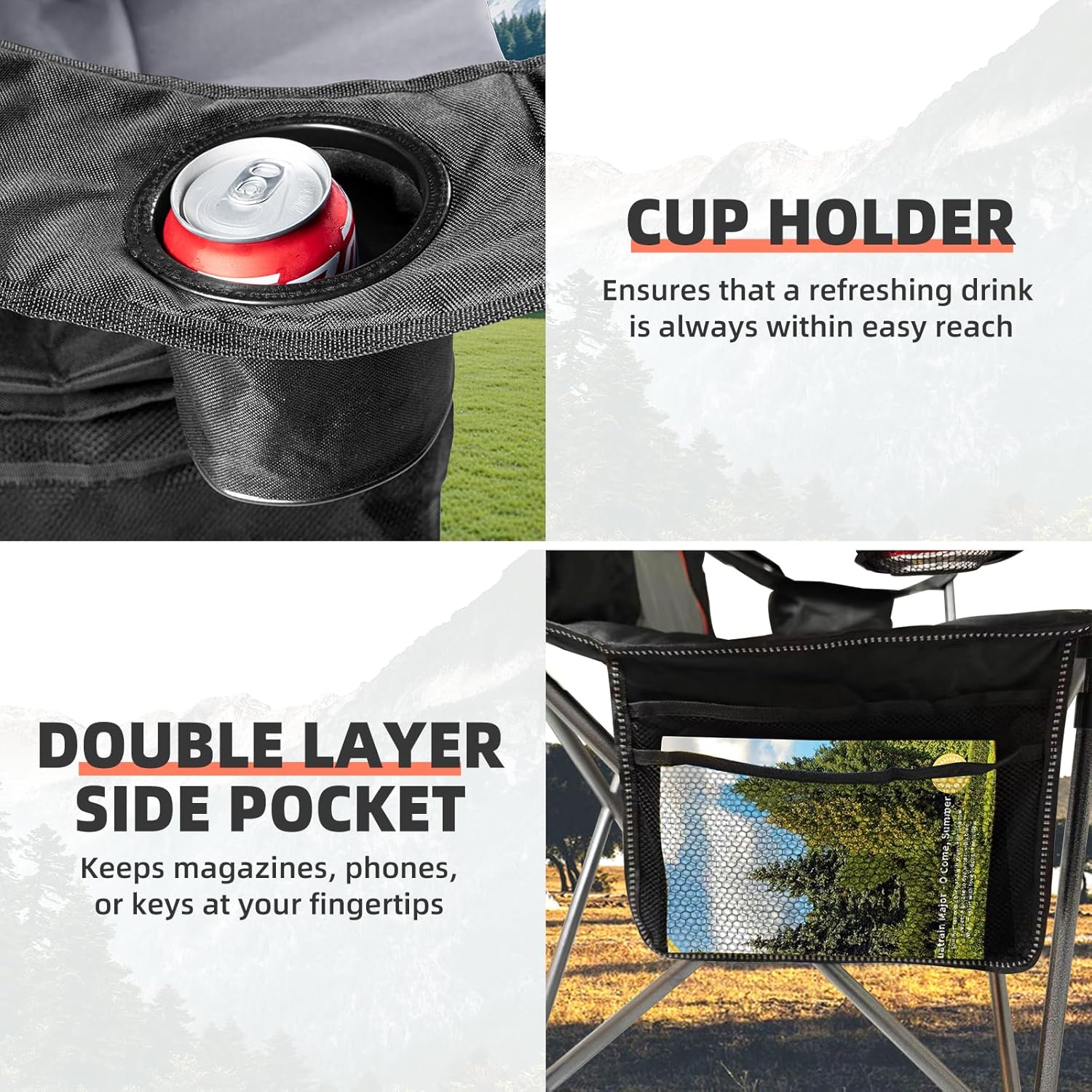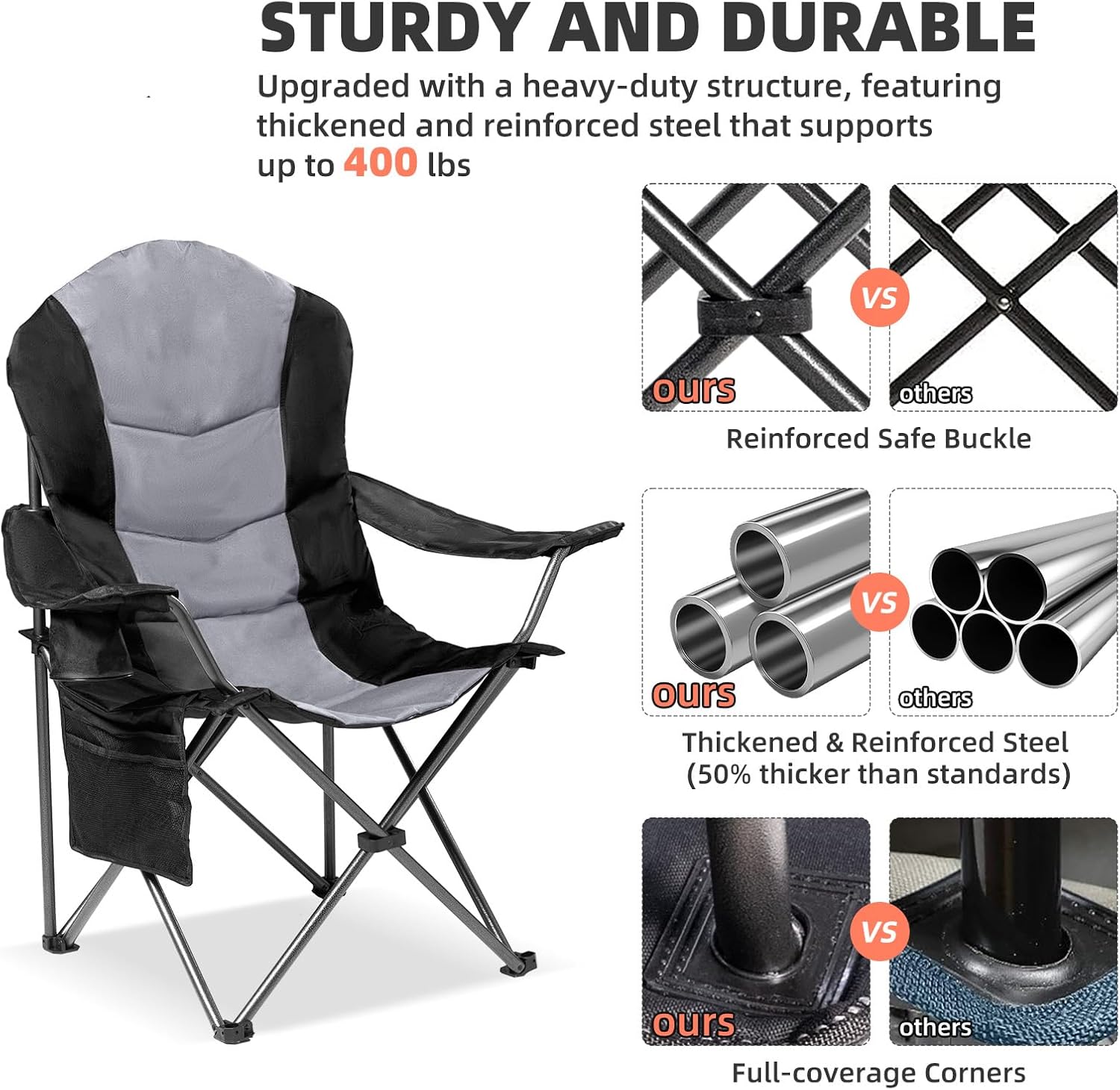 Each chair in this set is built to last, with a heavy-duty construction that can support up to 400lbs. The sturdy design ensures stability on various terrains, making these portable camping chairs a reliable choice for all your outdoor activities.
